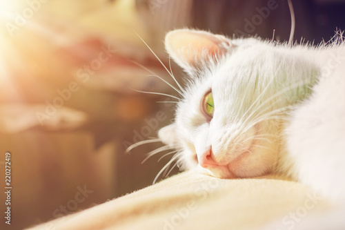 White cat on the bed