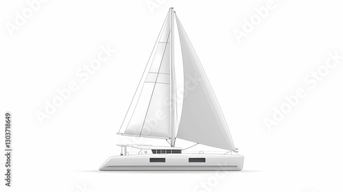 White catamaran sailboat on white background. Journey - Path. Illustration