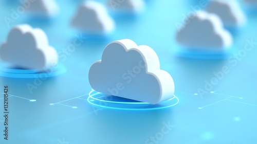 White cloud symbols on a blue digital background representing cloud technology and data storage solutions