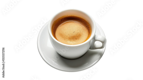 White coffee cup filled with espresso on transparent background