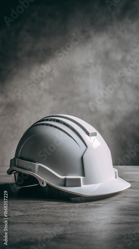 White Construction Helmet on Desk High Angle