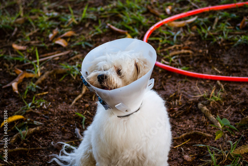 White dog with Elizabethan collar