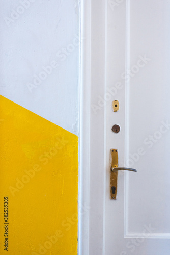 White door with yellow wall
