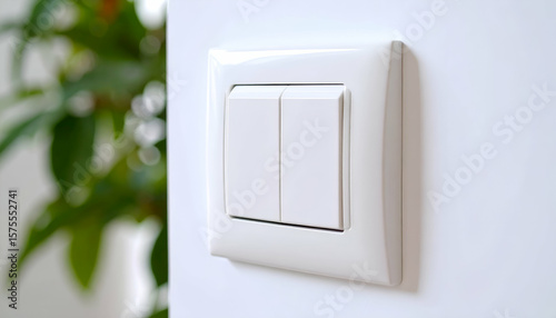 White double light switch with indoor.