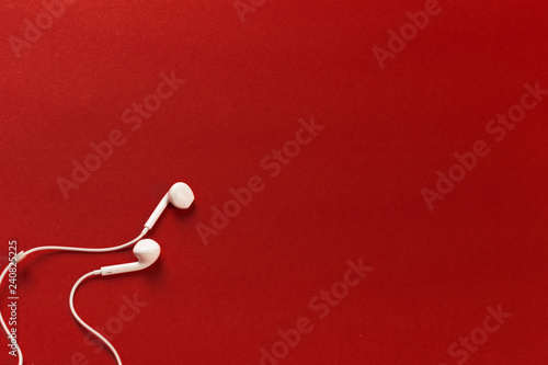 White earphones on red background