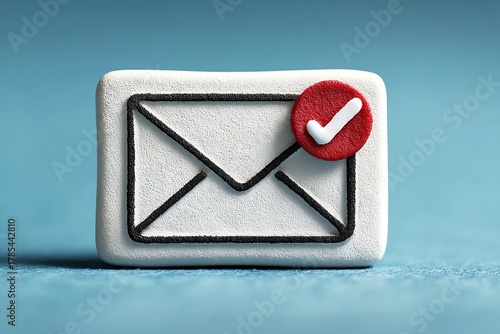 White Envelope Icon with Red Check Mark on Blue Background email message
