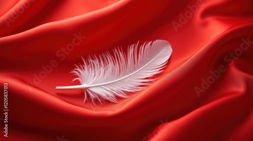 White Feather on Red Silk: Softness and Romance