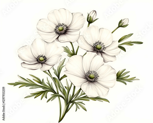 White Flowers Bouquet Illustration
