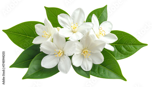 White flowers, green leaves isolated