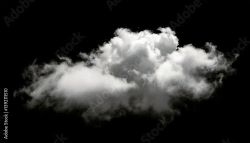 white fluffy cloud isolated black background. concept effect design smoke fog, mist overlay