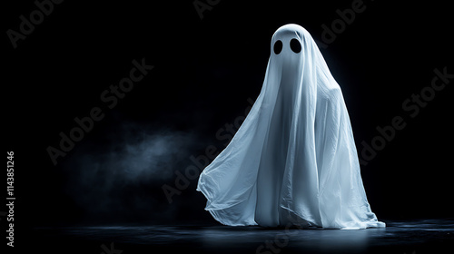 White Ghost Isolated On Black Background With Space For Text