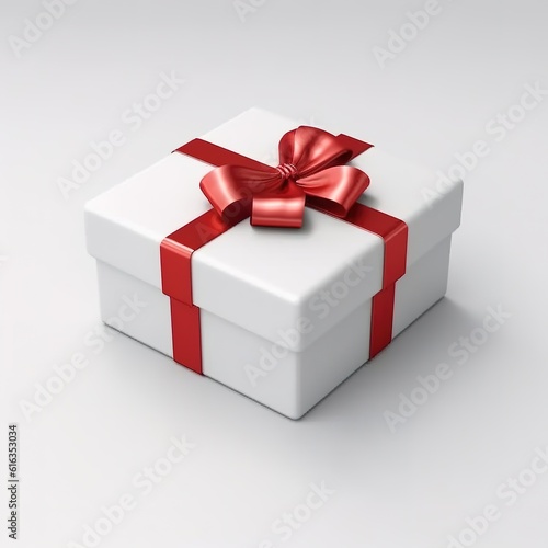 White gift box with red bow on white background