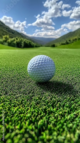 White golf ball on a green golf course