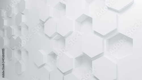 White hexagon honeycomb shape moving randomly, Abstract, Embossed Hexagon, White geometric hexagonal abstract background. 3D illustration rendering.