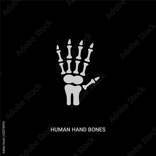 white human hand bones vector icon on black background. modern flat human hand bones from human body parts concept vector sign symbol can be use for web, mobile and logo.