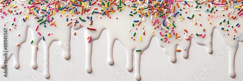 White icing sugar glaze with colorful rainbow sprinkles, leaking down banner
