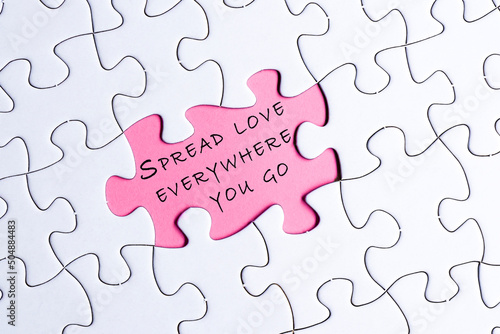 White jigsaw puzzle with motivational and inspirational quote over purple background.