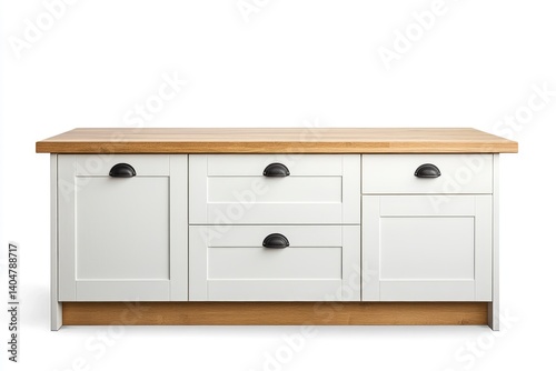 White Kitchen Island with Wood Countertop and Dark Hardware