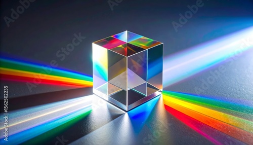 White light beam entering a crystal prism and refracting into a spectrum of colors