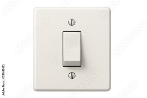White light switch closeup, symbolizing power management and electricity conservation against clean background