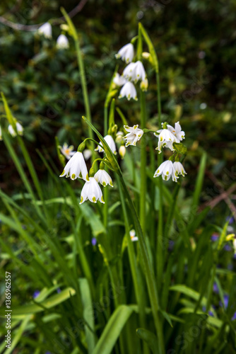 White lily flowers, Leucojum aestivum, in bloom in a spring garden