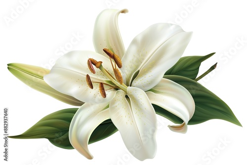 white lily on white background and buds