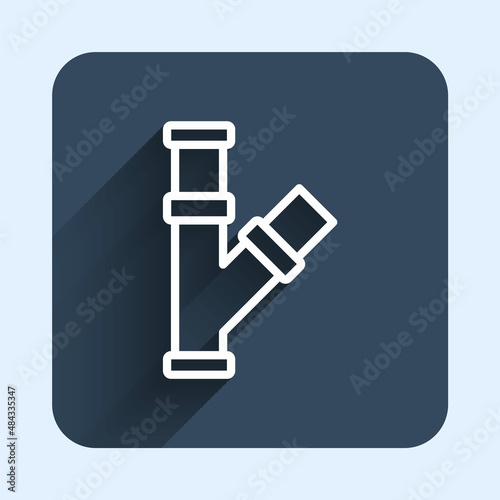 White line Industry metallic pipe icon isolated with long shadow background. Plumbing pipeline parts of different shapes. Blue square button. Vector