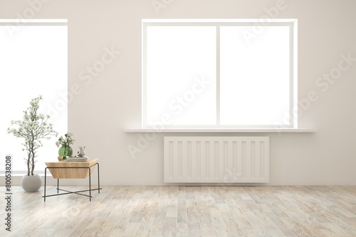 White living room with sofa. Scandinavian interior design. 3D illustration