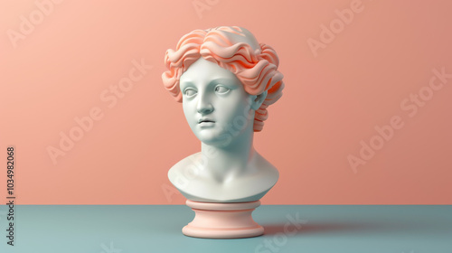 White Marble Bust with Pink Hair on Pink and Blue Background