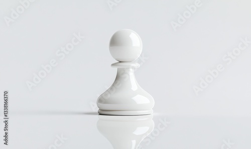 White pawn chess piece on reflective surface, simple background, strategy concept