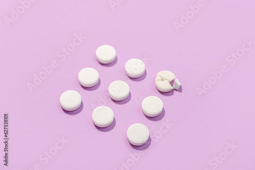 White pills on lilac background