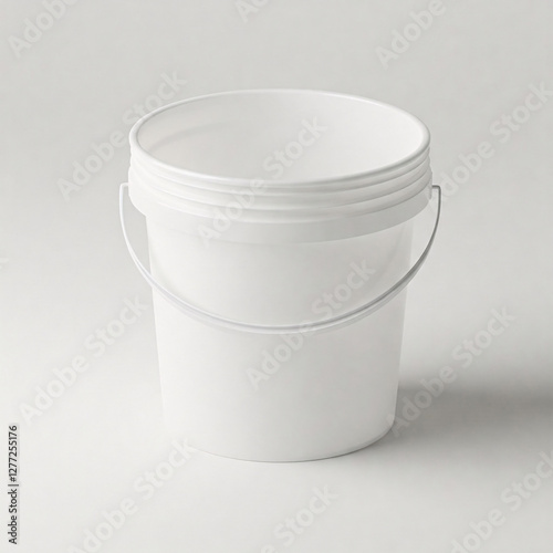 White plastic bucket isolated on white background. 3d render illustration front view