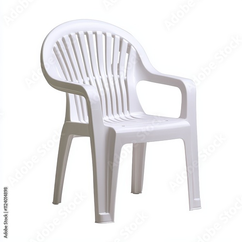 White Plastic Chair with Armrests, Indoor and Outdoor Use, Simple Design