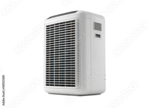 White portable air conditioner appliance with front grille and side controls image, Isolated, Png Transparent Background