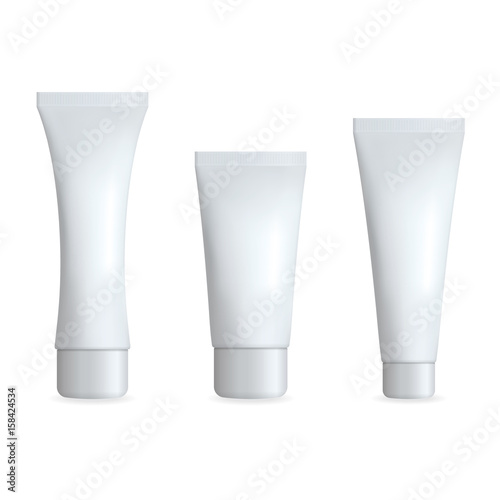 White Realistic Tube For Cream. Cosmetic Template Set. Isolated Vector illustration.