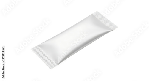 White rectangular foil sachet with crimped edges angled on a, isolated on a transparent background, cutout, PNG