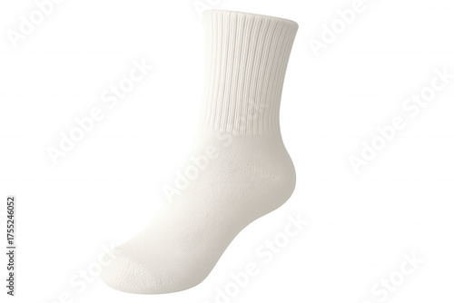 White ribbed ankle sock, clean cotton textile clothing accessory, isolated on transparent background