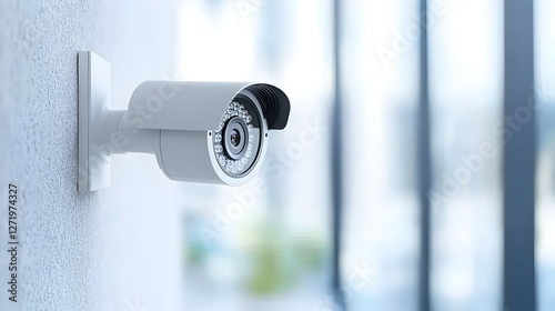 White Security Camera Mounted on a Wall in an Office Setting