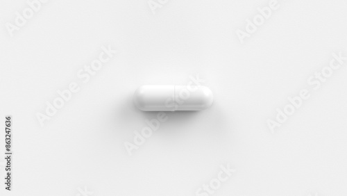 White single pill isolated on a white background. Tablet, pill capsule top view, flat lay. 3d render illustration