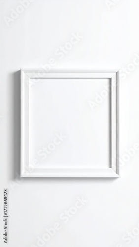 White square frame on an off-white wall, casting soft shadows. Clean lines and minimalist aesthetic. Ideal for art or photo presentation