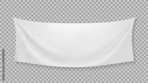 White textile banner with folds with transparent shadow