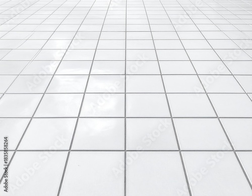White tile surface with a grid-like pattern, perspective