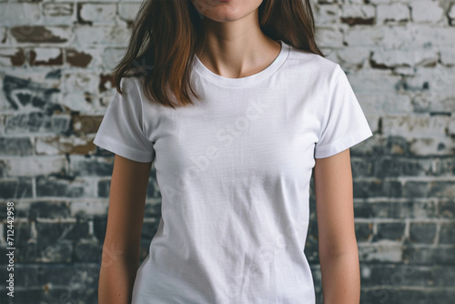 White t-shirt mockup wearing by a female model - Round neck t-shirt mockup