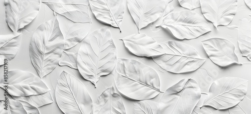 White wall with embossed leaf pattern, seamless texture background