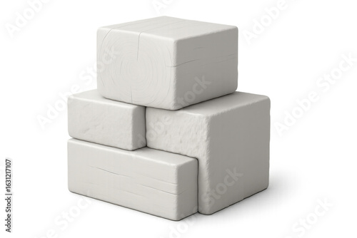 White wooden cubes stacking asymmetrically, forming minimalist pyramid structure on clear surface