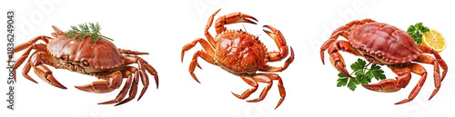 Whole boiled crab isolated on transparent background