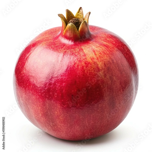 Whole Fresh Red Pomegranate Fruit - A single vibrant red pomegranate fruit with a smooth surface and crown, showcasing freshness and natural beauty.