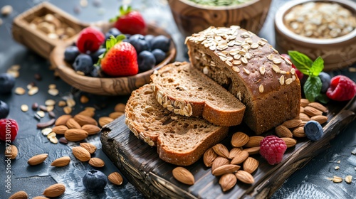 Whole grain bread with a variety of healthy toppings, regimen, wholesome diet