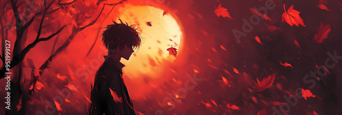 Wide Screen Horror Wallpaper with Anime Manga Character in Dark Theme