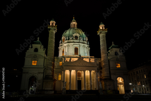Wiener Karlskirche bei Nacht